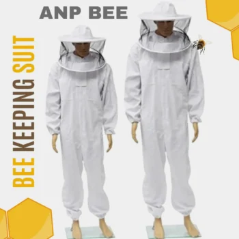 ANP BEE Ventilated Full Body Beekeeping Suit with Gloves and Round Removable Veil Hood I Sting Less Protection Beekeeping Suit I Essential Suit for Beekeepers, (White), Size XL